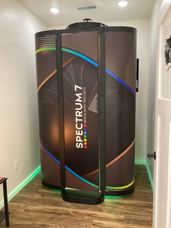 Our full body Red light Therapy (Spectrum 7) uses low-wavelength red light to penetrate the skin, promoting muscle recovery and reducing inflammation. It is also used to improve skin health, reduce pain, and stimulate tissue repair. The therapy is non-invasive and feels relaxing, with benefits of improved skin tone, reduced wrinkles, fine lines, stretch marks, acne, & cellulite.
